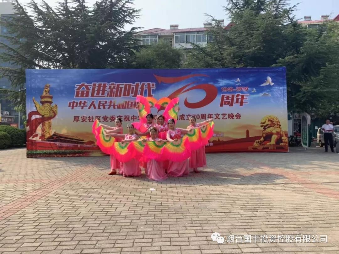 为庆祝中华人民共和国成立70周年,讴歌党的光辉历程,丰富社区居民群众的文化生活,9月30日上午,国丰公司与“双报到”单位厚安社区共同举办了“奋进新时代”庆祝中华人民共和国成立70周年文艺汇演。